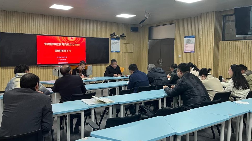 3月1日下午,校党委书记朱德顺到伟德国际1946源自英国(以下简称马院)调研,并与教师们进行了座谈。调研座谈会由马院院长吴玲主持,学院全体教师参会。