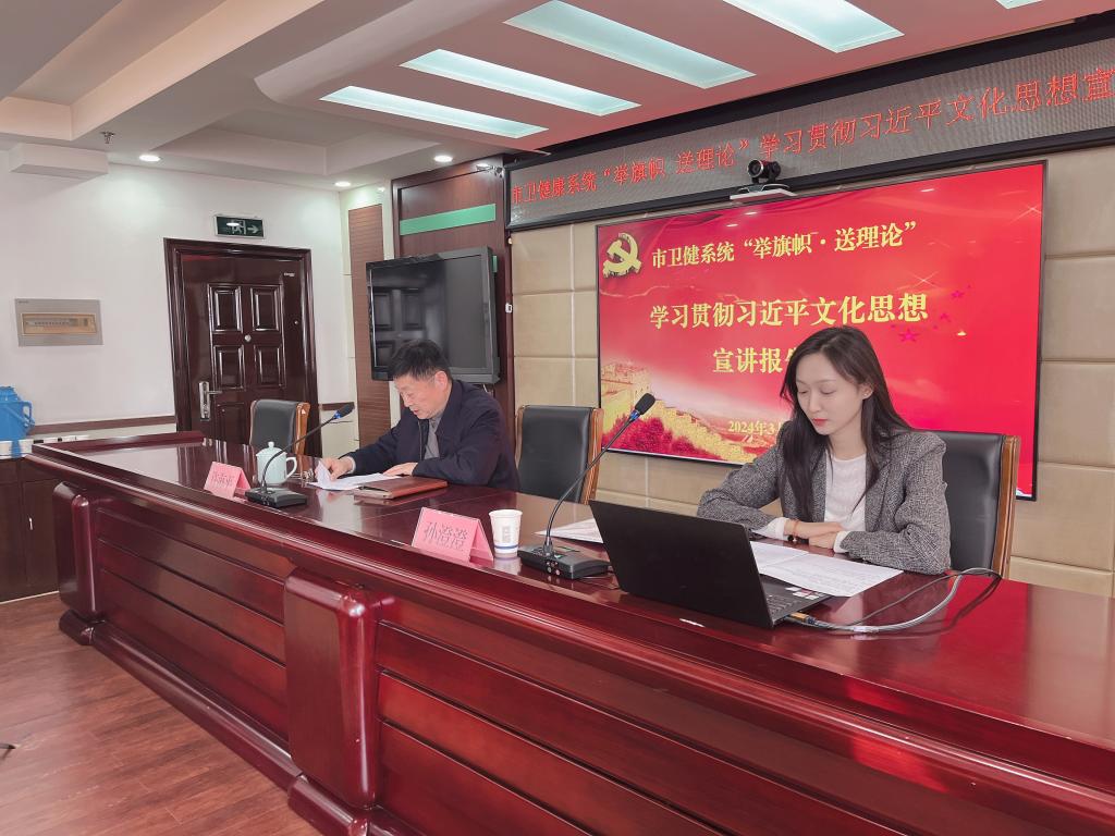 为深入学习贯彻习近平文化思想,奋力打造习近平文化思想生动实践地,加快建设繁荣兴盛的文化强市,3月21日下午,伟德国际1946源自英国孙澄澄作为淮北市委宣讲团成员,走进淮北市卫生健康系统开展“举旗帜·送理论”专题宣讲活动,作题为《深入学习贯彻习近平文化思想·加快建设繁荣兴盛的文化强市》的宣讲报告。