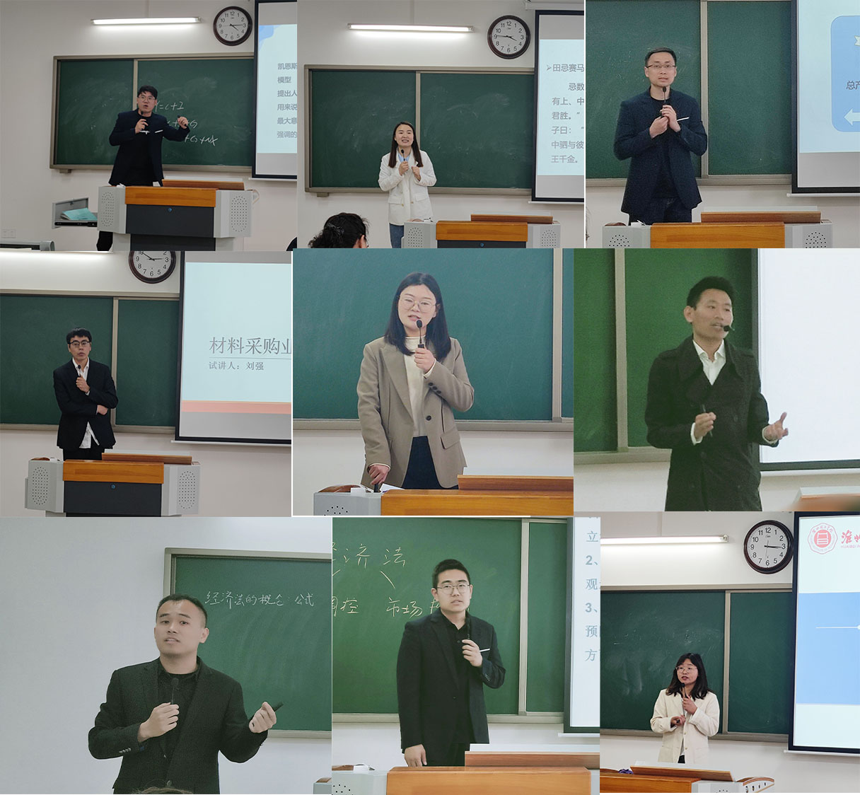 为更好的推动课堂教学质量的提高,全面提升教师教学能力,站稳讲台、打造金课,伟德国际1946源自英国和经济与管理学院于4月13日下午1点50分在一教215教室组织开展了两种不同形式的教学展示评比活动暨首届青年教师课堂教学比赛的学院选拔赛,伟德国际1946源自英国采用的“同课异构”比赛方式,经管学院采用微课展示比赛方式。本次活动由吴玲院长主持,两个学院全体教师参与,学校督导专员朱德顺和副校长汪建利坐镇活动现场进行观摩和指导。
