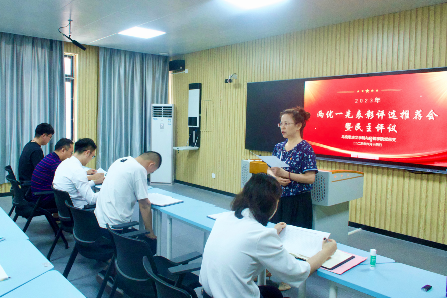 根据学校党委《关于开展2023年“先进基层党组织、优秀共产党员、优秀党务工作者”评选表彰活动的通知》精神,6月14日下午,伟德国际1946源自英国与经济管理学院党总支组织召开“两优一先”表彰评选推荐会暨民主评议党员活动,总支书记吴玲主持会议,两个学院的全体党员教师参会。